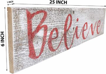 Rustic Wood Believe Sign – This gorgeous sign has a charming design you and your family will love for that cute decorative farmhouse fixer upper style. With a whitewash background and red letters, it spreads Christmas Cheer and cozy feelings. If you love barn wood pallet wood and all things rustic – you will love this cute little sign. We source all of our wood locally and we hand paint and hand make every product here in the USA. You will be buying from a small family-owned business in the USA. Our family strives for 100% customer satisfaction and we are here to answer any of your questions right away.