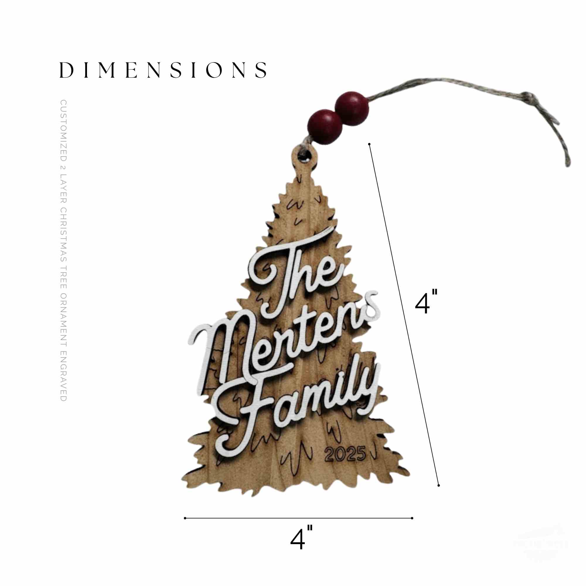 Customized 2 Layer Christmas Tree Ornament Engraved on Reclaimed Wood (Wooden Decoration Gift)
