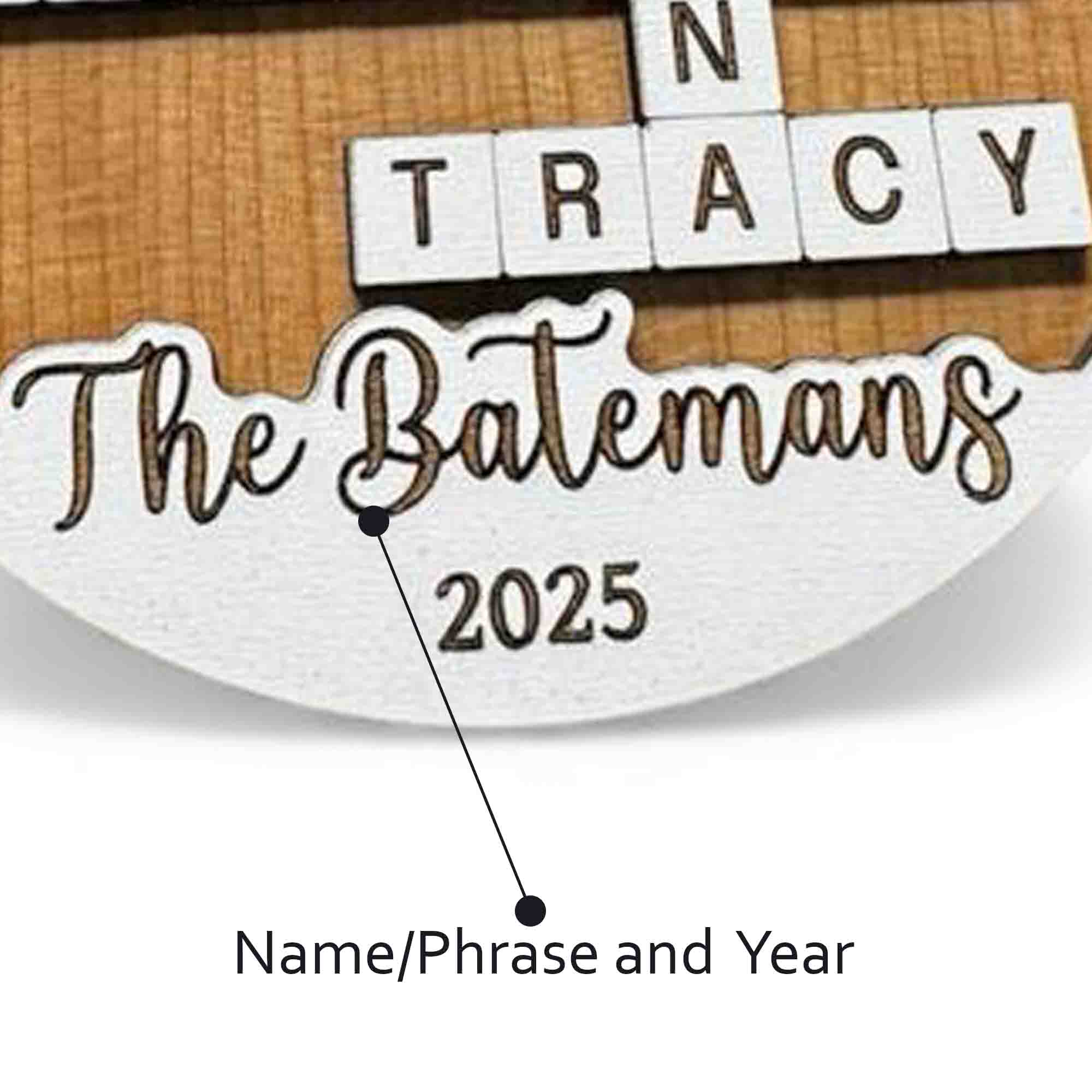 Customized Family Name Ornament with Crossword Design made from Reclaimed Wood