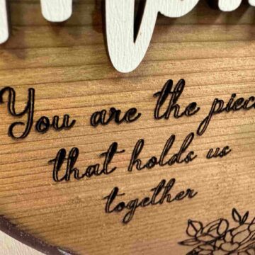 This special piece is designed to remind your mom that she truly holds the family together. With its rustic yet elegant appearance, it will make an ideal addition to any room in her home. The engraved message on the wood adds an extra personal touch that will surely make her feel valued and appreciated.