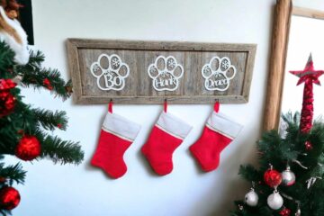 Our Handcrafted Customized Reclaimed Wood Wall Hanging Stocking Hanger for Fur Babies- A Perfect Blend of Rustic Charm and Personalized Elegance!
