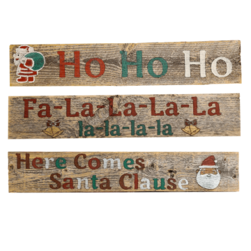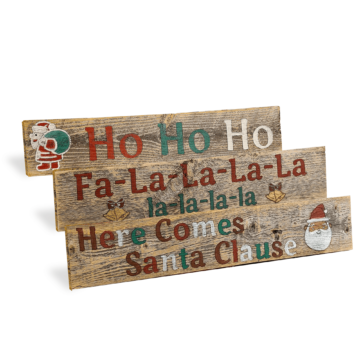? 3 piece set comes with “HO HO HO,” Fa la la la la” and “Here Comes Santa Clause”